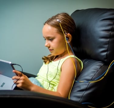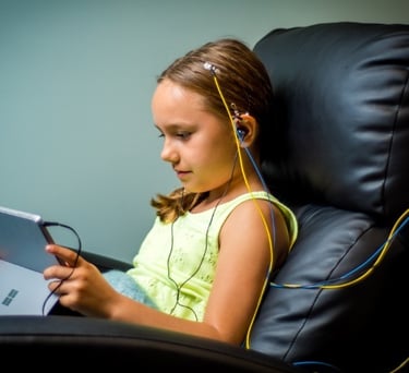 Durante a sessão, são colocados elétrodos em pontos específicos no couro cabeludo e orelhas, que através de estímulos auditivos suaves, farão a leitura e devolução da informação ao cérebro, de maneira a corrigir e alinhar a atividade neuronal.